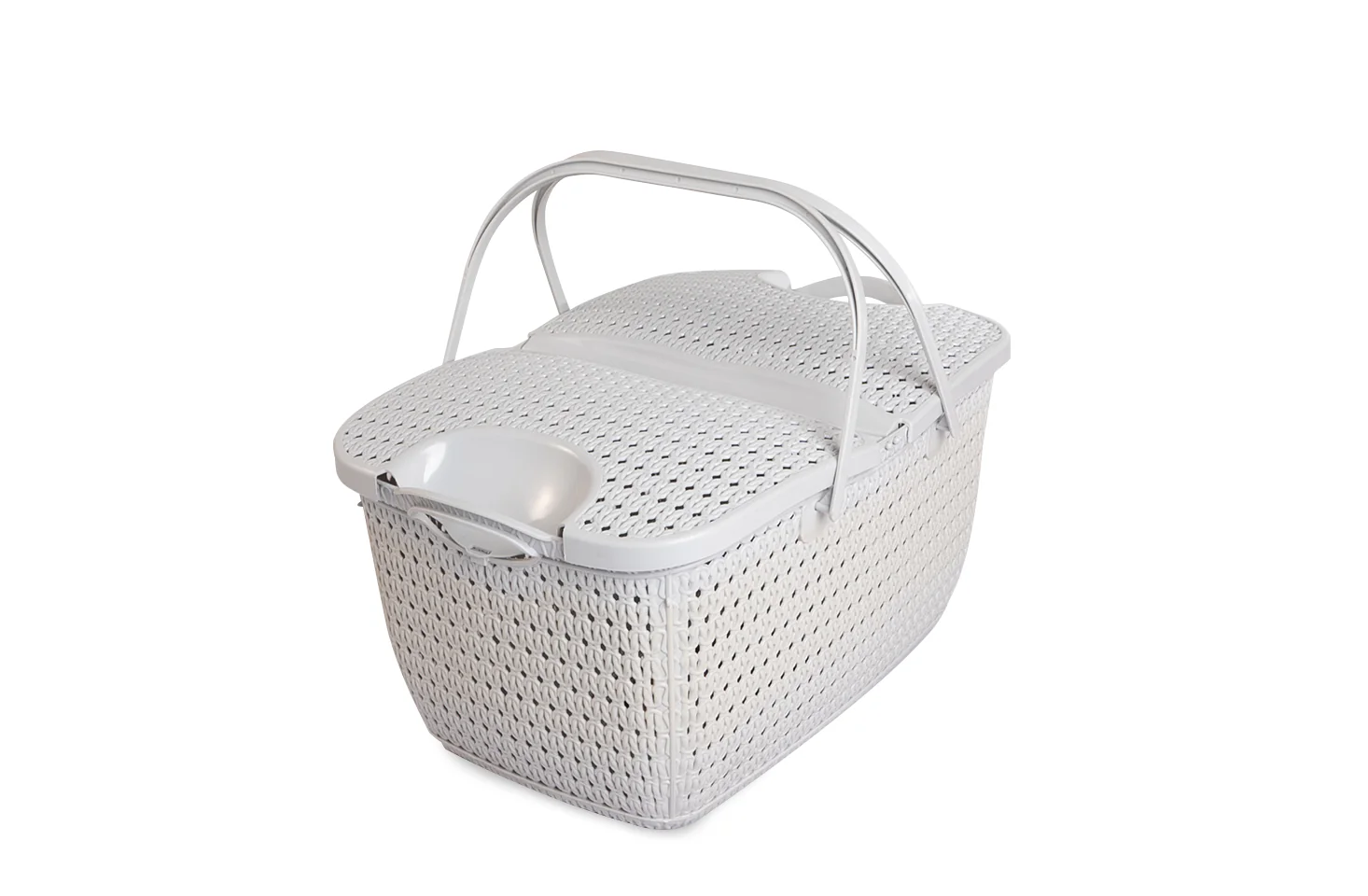 Multipurpose Woven Plastic Picnic Basket with Lid & Handles