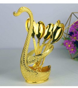 Luxury Gold Swan Spoon Set with Holder – 6pcs Coffee & Tea Spoons