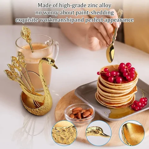 Luxury Gold Swan Spoon Set with Holder – 6pcs Coffee & Tea Spoons