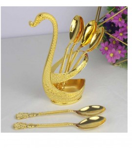 Luxury Gold Swan Spoon Set with Decorative Holder